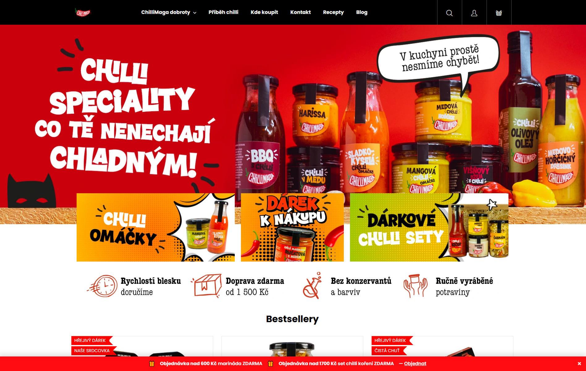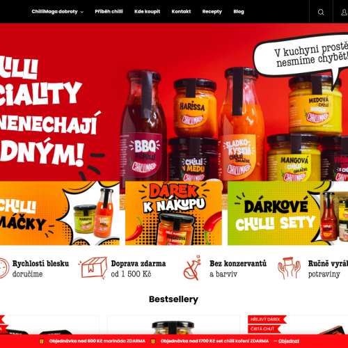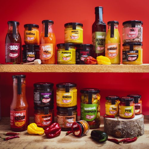 Chilli omáčky, nakládané produkty (Oi Muchim, čalamády, zeleninové směsi), sušené chilli, koření, chilli škvarky, dárkové balíčky i nepálivé delikatesy – chuť a poctivost bez kompromisů.