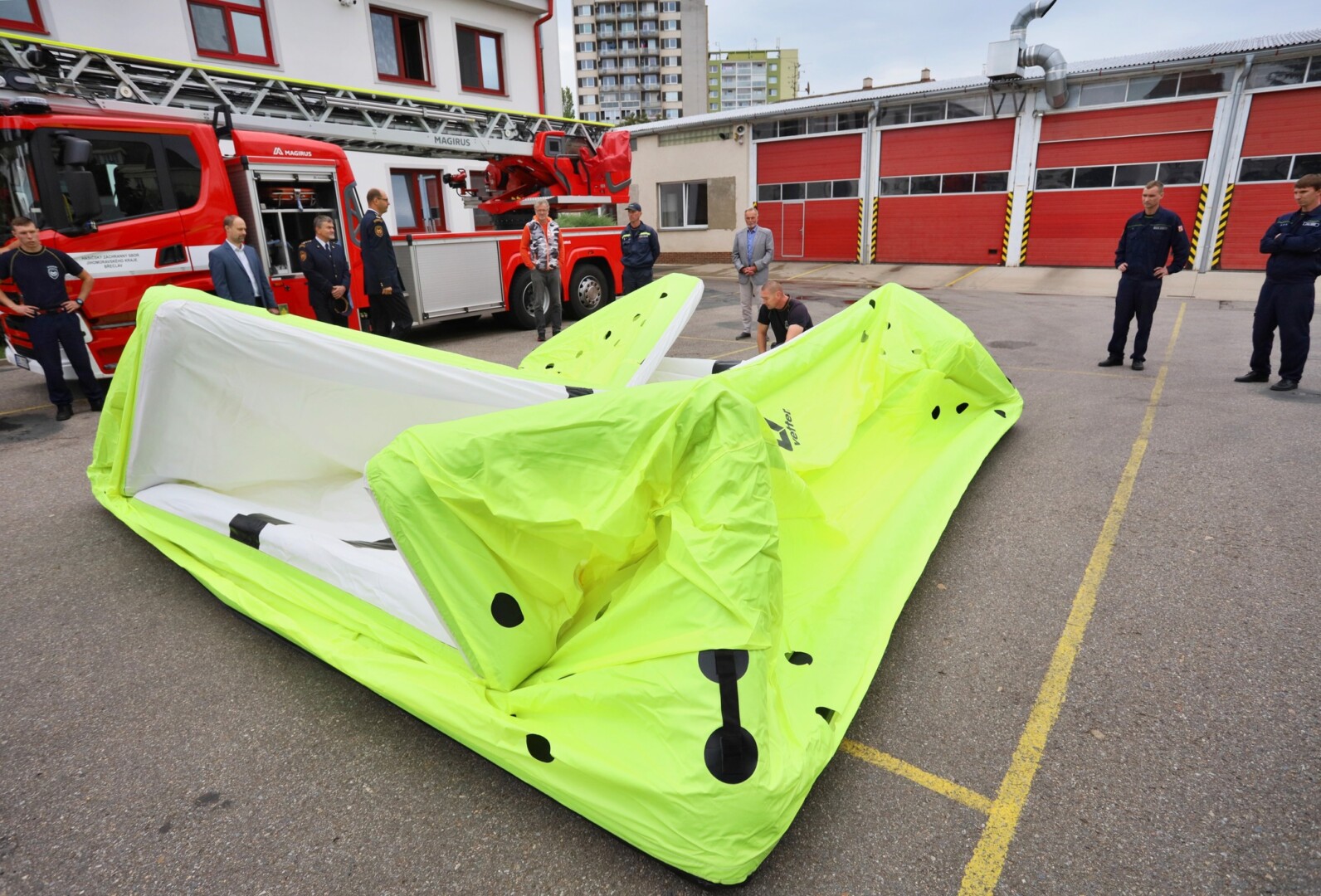 Břeclavští hasiči získali důležitou část výbavy - novou seskokovou matraci.